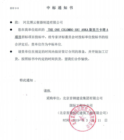 本次中標充分體現了我公司的技術實力和服務水平,進一步證明了我公司在同行業(yè)中的競爭優(yōu)勢,也更進一步開闊了國際市場。